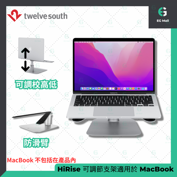 twelve south - HiRise 可調節支架 適用於蘋果 MacBook 筆記本電腦座 防滑臂 金屬支架配有彈簧支撐桿