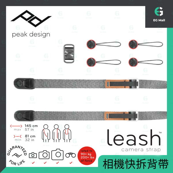 peak design - LEASH 灰色 多功能 DSLR 專業相機 快夾背帶 頸帶 吊帶 肩帶 快拆相機帶 相機背帶 中型單眼 微單