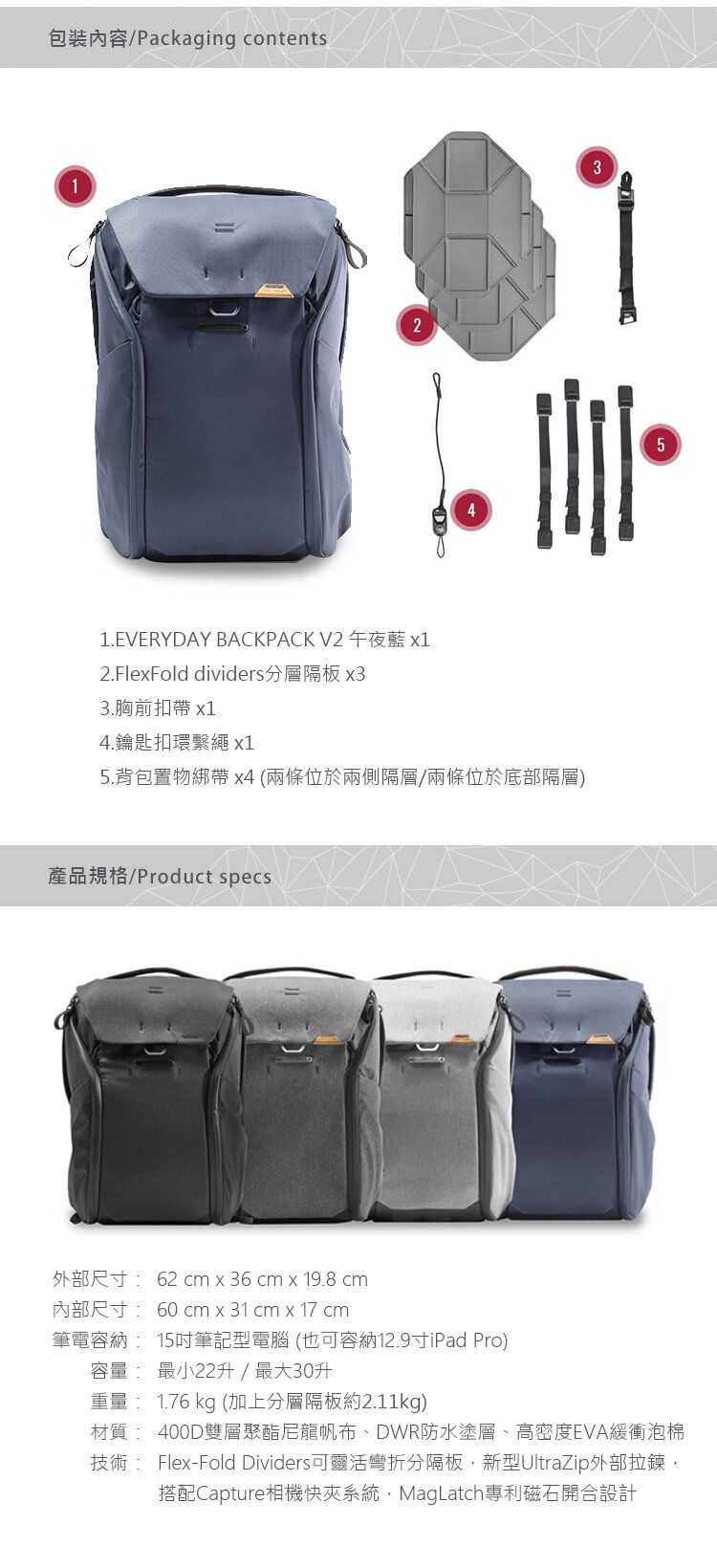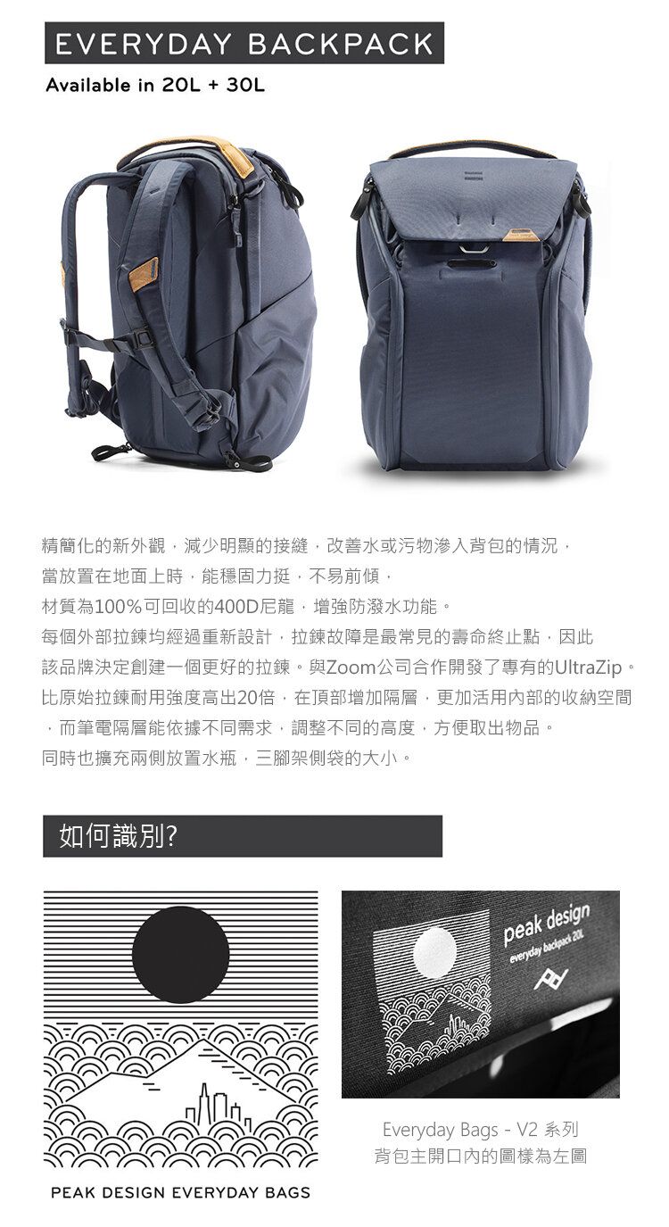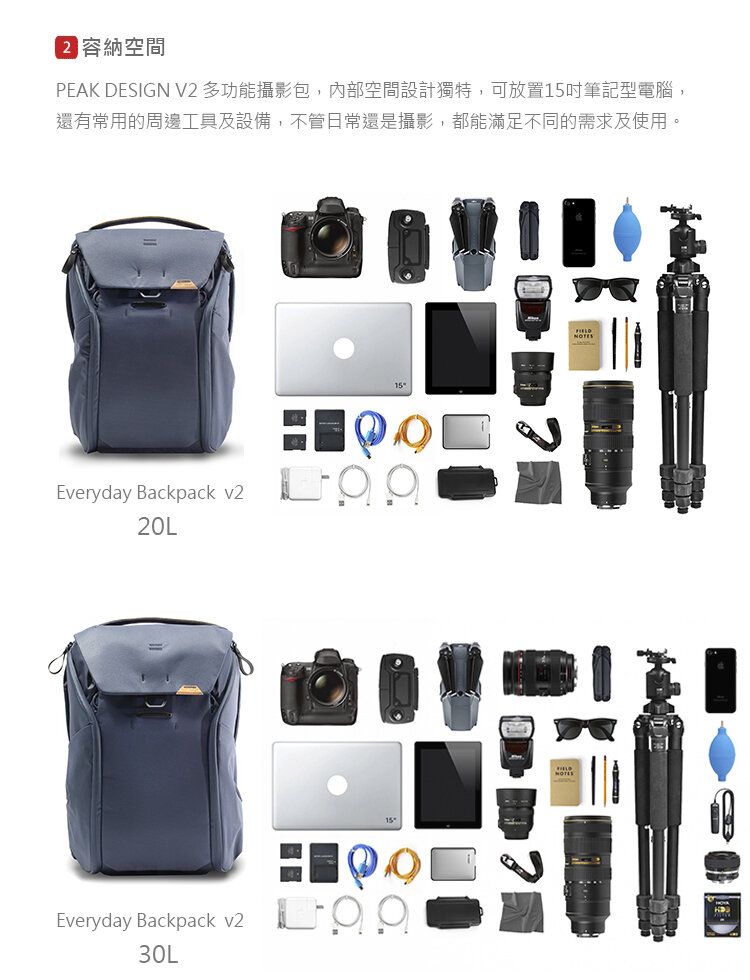 Peak Design - EveryDay BackPack V2 30L 2機4鏡15" NB DSRL 攝影相機電腦背包背囊 香港行貨