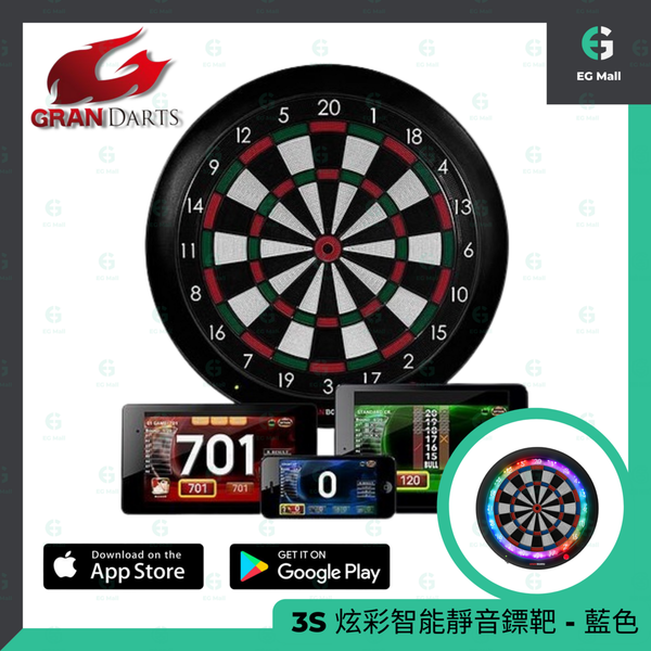GranBoard 3S Gran Board 3S LED 炫彩藍牙電子飛鏢線上對戰鏢靶- 藍色 靜音鏢靶