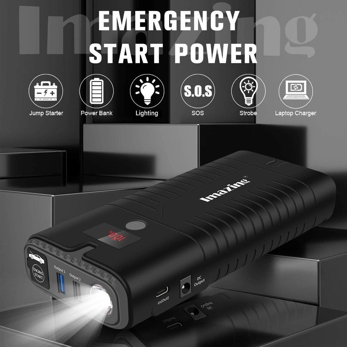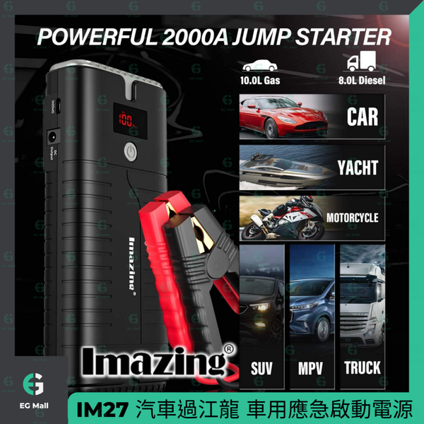 iMazing - IM27 車用迷你便攜式應急電池 死火 過江龍 救車寶 SOS LED電筒 燃氣 柴油 Macbook 電腦 手機 充電