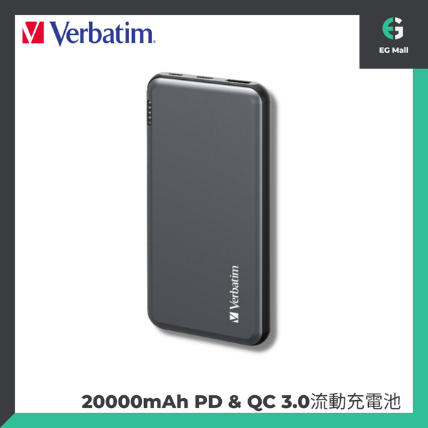 Verbatim 20000mAh 66628 PD & QC 3.0 22.5W Type C 雙快充 流動充電器 灰色 行動充電器 行動電源 尿袋 USB充電器 叉電器 充電寶 自動斷電保護