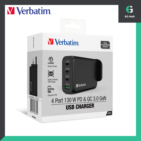 130W 66634 4輸出口 PD & QC 3.0 GaN USB 電腦充電器 Type-C PD x 3 + USB QC3.0 x 1 Black 氮化鎵 技術 快充火牛 USB充電器