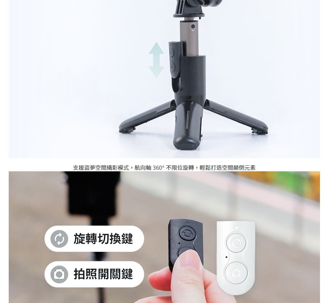 三腳架模式:打開底部輕鬆秒變,搭配藍牙遠端拍攝好簡單