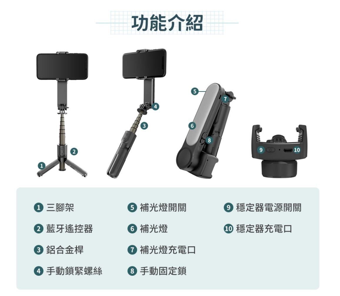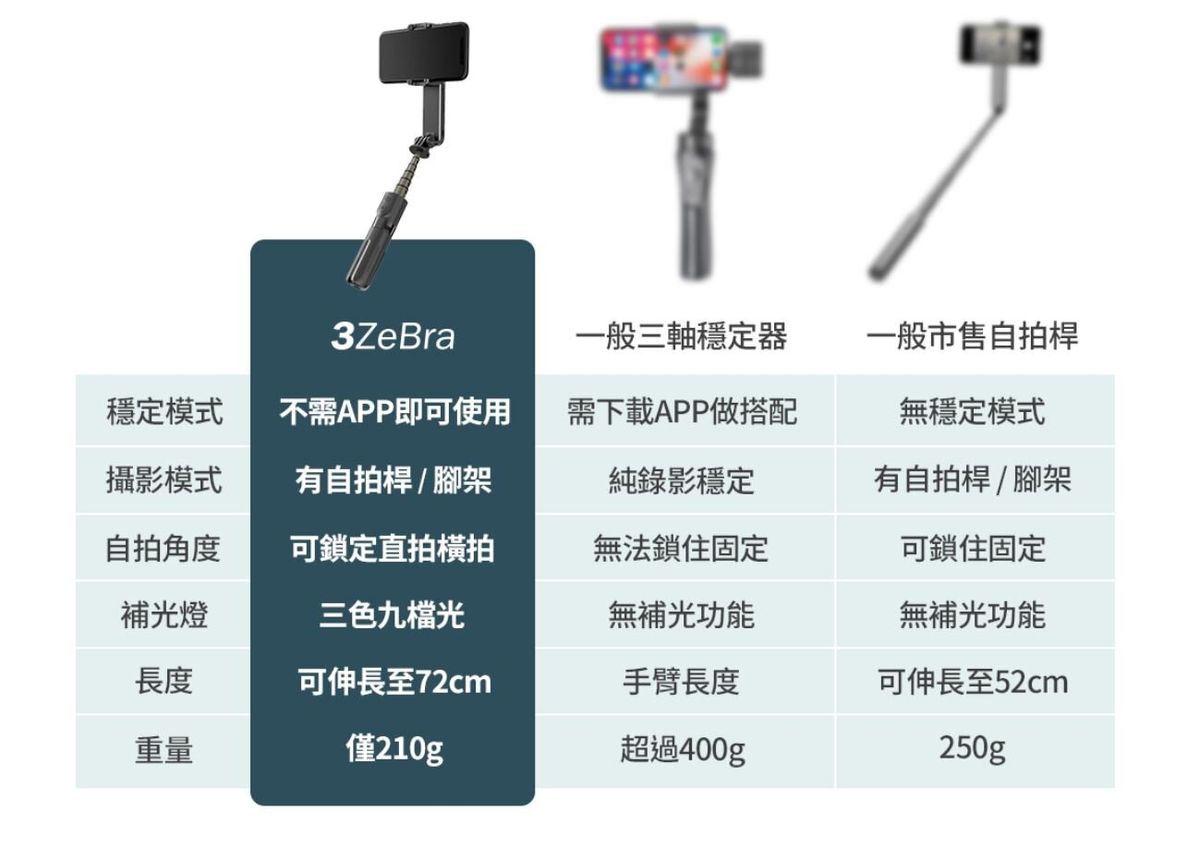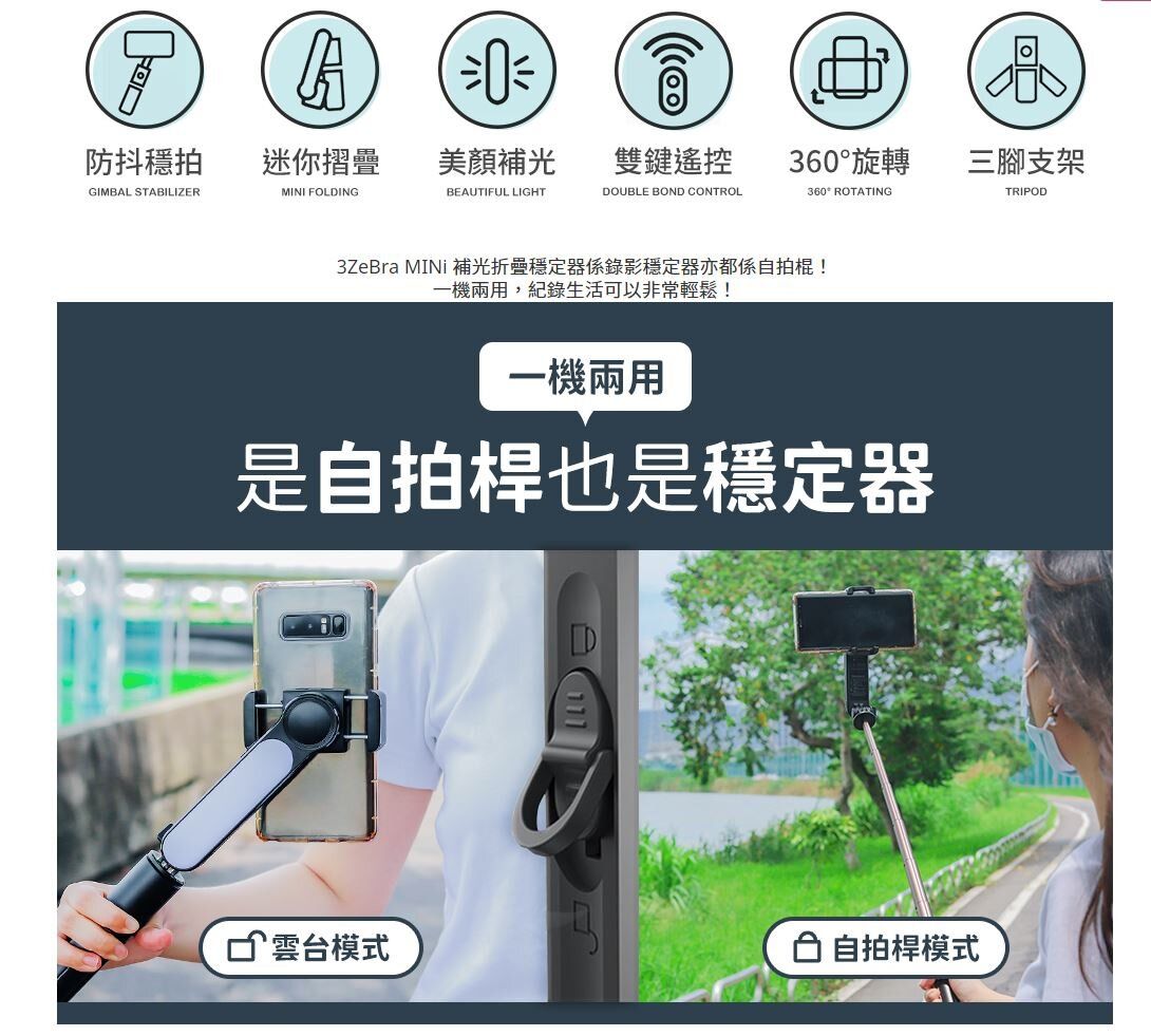 三隻斑馬 - 雲台 穩定器 補光折疊 自拍桿 三腳架 補光燈 3ZeBra MINi 原裝行貨 黑色