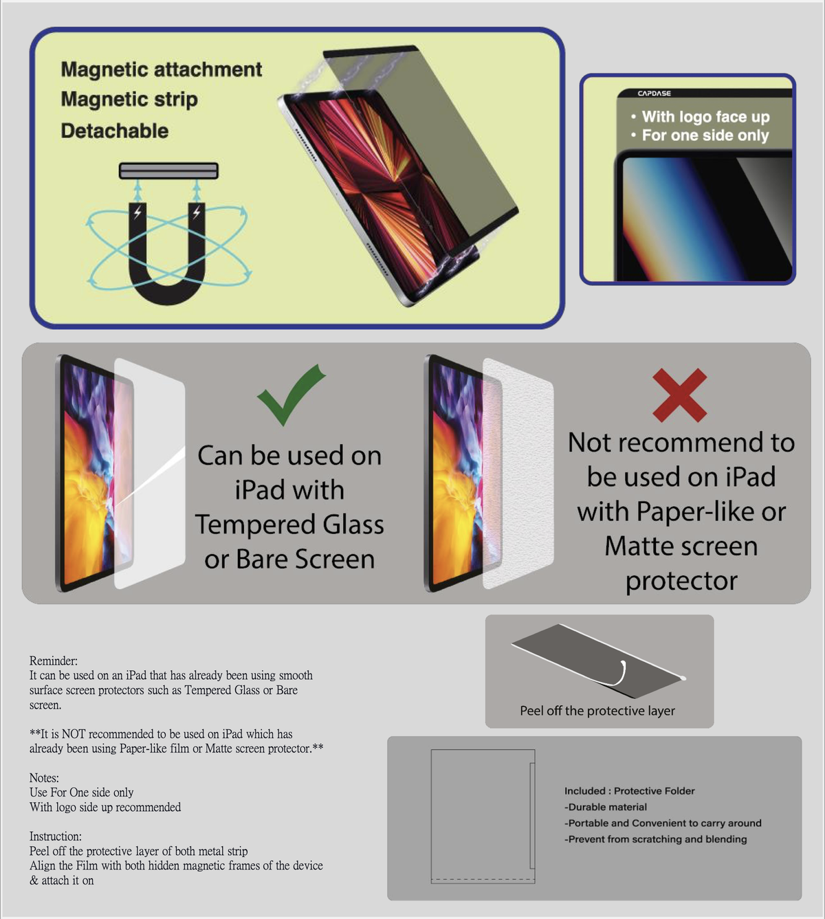 CAPDASE - Apple iPad Pro 12.9 可拆卸磁石防窺紙感貼 屏幕保護貼 紙質感 繪圖 畫畫 防指紋 防污 易於清潔