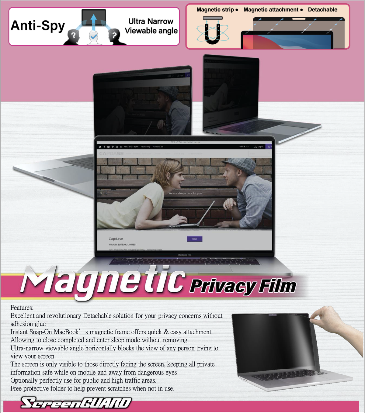 CAPDASE 磁性 DMF 防窺膜是一種出色的革命性可拆卸解決方案,無需膠水,可解決您的隱私問題。