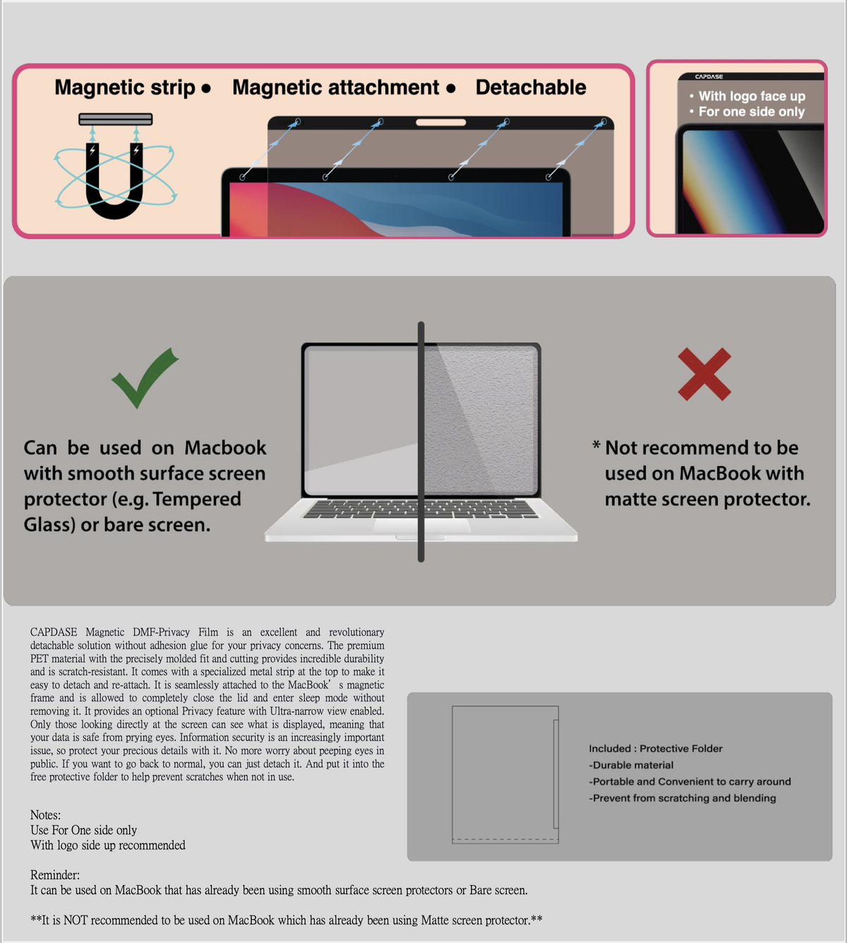 CAPDASE 磁性 DMF 防窺膜是一種出色的革命性可拆卸解決方案,無需膠水,可解決您的隱私問題。