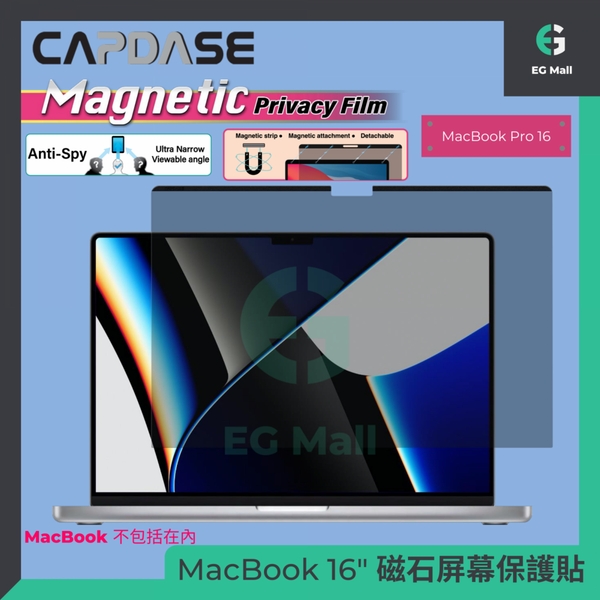 CAPDASE - Apple Macbook Pro 16 可拆卸 磁石防窺屏幕保護貼 防偷窺 Instant Snap On MacBook 磁性框架 超窄可視角度