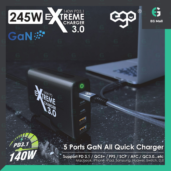 EX245 EXTREME 3.0 140W-245W PD3.1 GaN 5 USB MacBook Pro 充電器 電腦充電器 Macbook QC5,PPS,AFC,SCP
