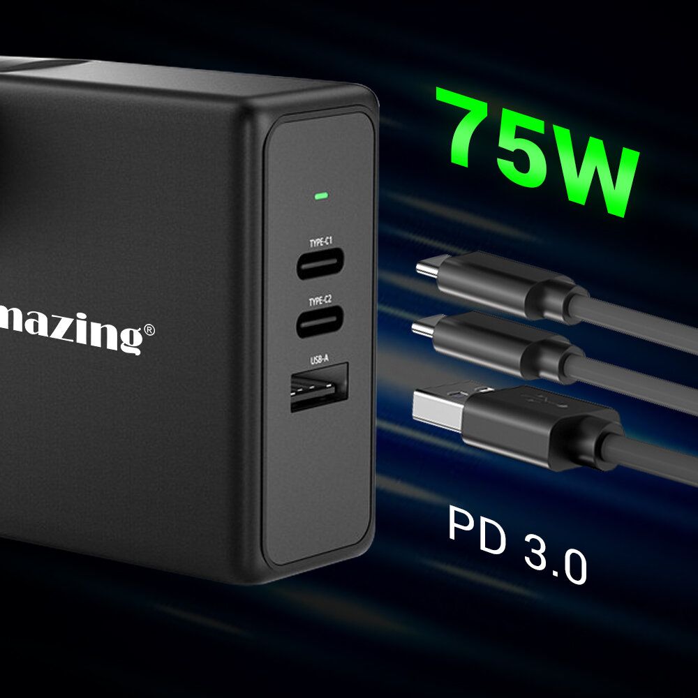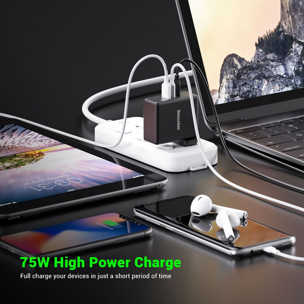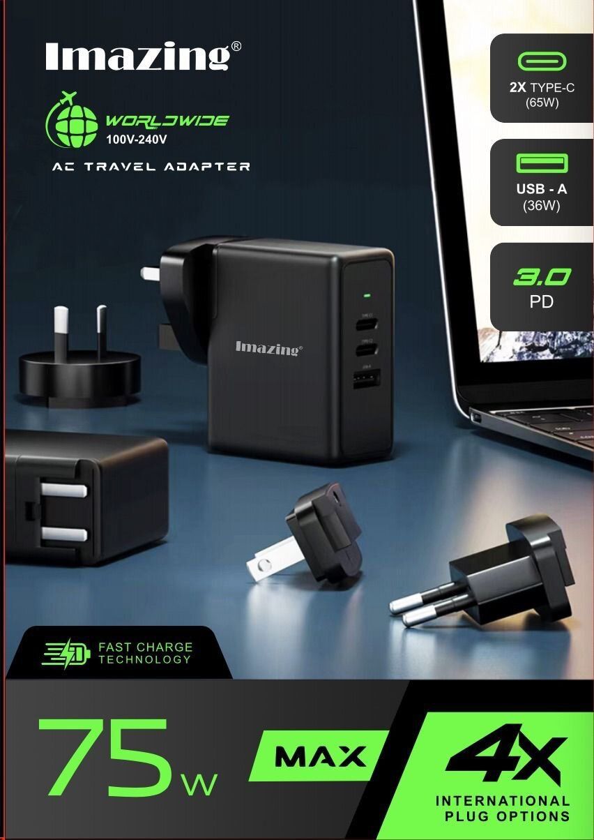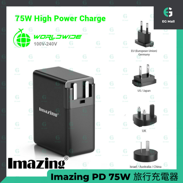 iMazing - PD 75W 旅行充電器 3 Ports Type C PD USB 快速充電器手機 平板 手提電腦 快充火牛 USB充電器 叉電器