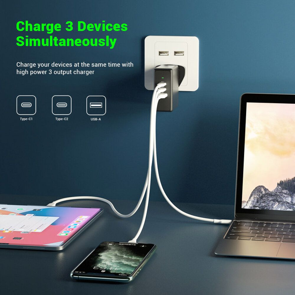 C1+ C2+ USB-A= 45W + 15W + 15W