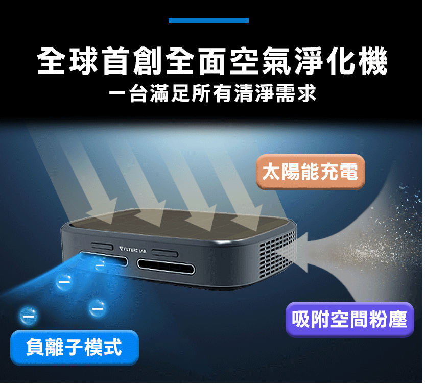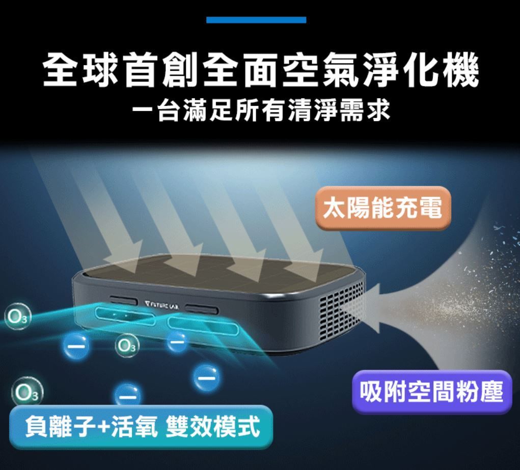 以太陽能 驅動既負離子/活氧雙模式空氣清淨機!