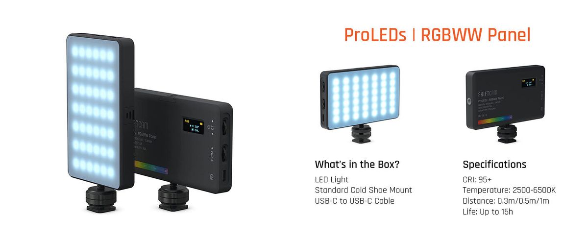 SHIFTCAM - ProLED RGB 全色域補光燈 CCT 照明模式 2500-9500k 冷靴底座 Type C 充電 萬用鏡頭夾