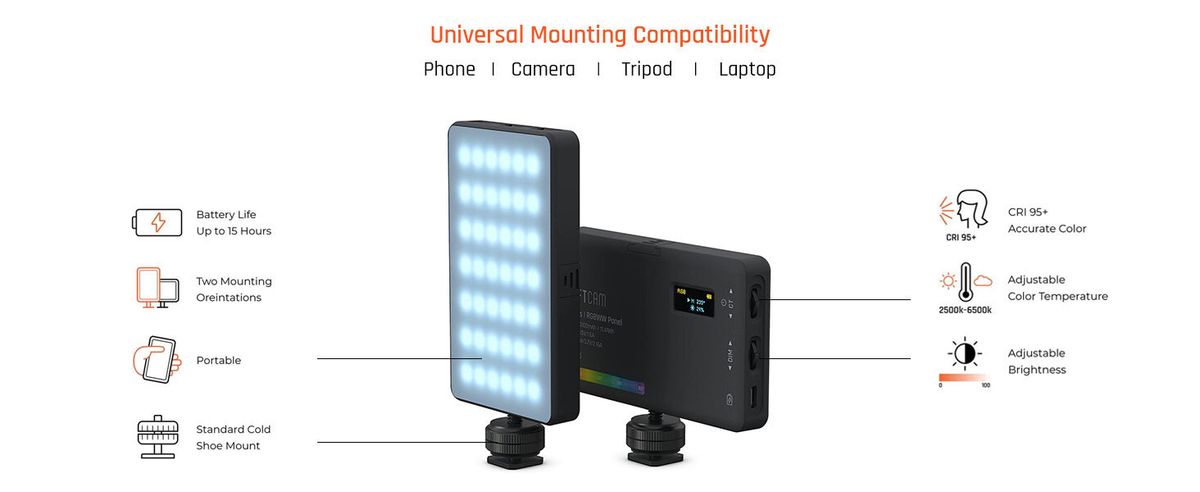 適合電影的電影氛圍。 在 RGB 模式下:360 種 RGB 顏色,可調節飽和度以符合您的風格。 在 CCT 模式下:2500-9500k 最暖至最酷的燈光可為任何場景設定合適的溫度。