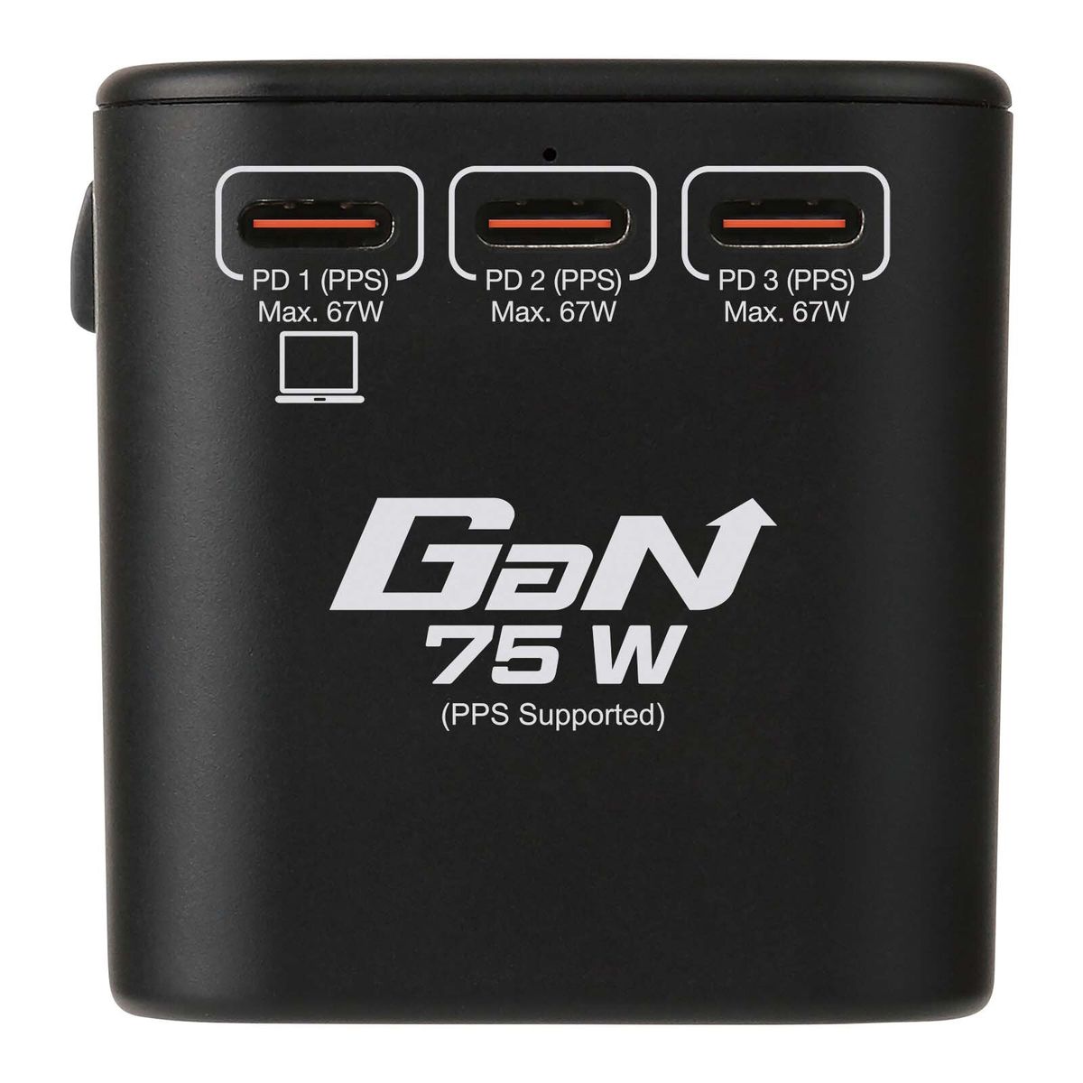 旅行充的最大總輸出為75W,能兼容最多3部裝置同時進行快速充電。