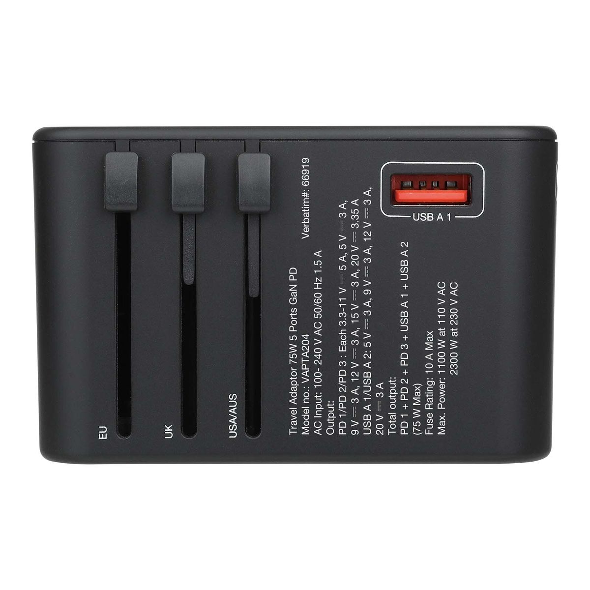 Verbatim - 旅行 轉插 5 Ports 66920/66919 67W 氮化鎵 PD 3.0 Type C USB QC 3.0 伸縮插蘇 旅行充電器 快充火牛 USB充電器 快叉叉電器