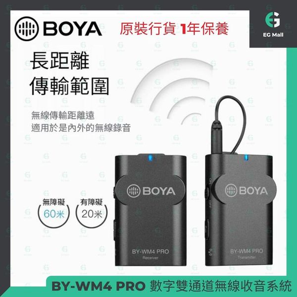 BY-WM4 PRO K1 數字雙通道無線收音系統 3.5mm 84dB或更高 1個發射器+1個接收器