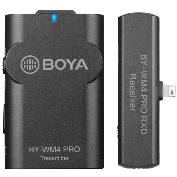 BY-WM4 Pro-K3 Apple Lightning iOS (Iphone / Ipad )設備專用,一拖一麥克風系統。由一個腰包發射器(TX4 Pro)和一個便攜 接收器(BY-WM4 PRO RXD)及其配件組成.