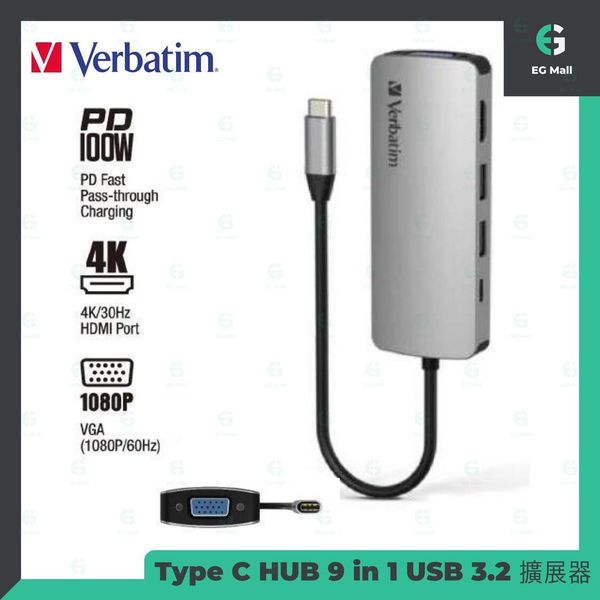 Type C HUB 9 in 1 66899 USB 3.2 Type C PD 100W 擴展器 集線器 SD/Micro SD 讀卡 4K/30Hz HDMI VGA AUX 3.5mm 數據傳輸