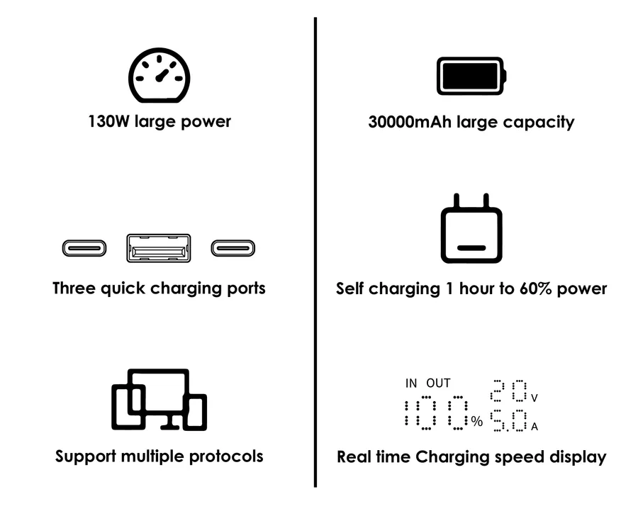 Type-C1 In&Output : 5V/9V/12V/15V/20V@5A (Max.100W)
