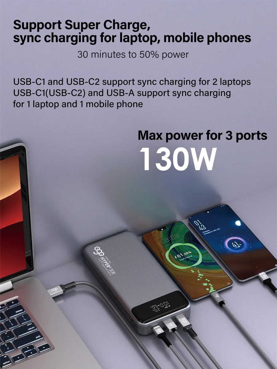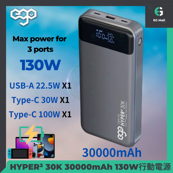 ego - HYPER 2代 30K 30000mAh 130W PD 行動電源 移動電源 流動充電池 尿袋 充電器 PD PPS SCP QC4+ QC3.0