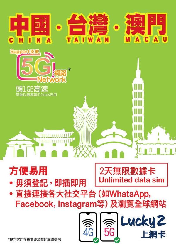 - 此卡只提供流動數據服務及不提供語音通話分鐘。