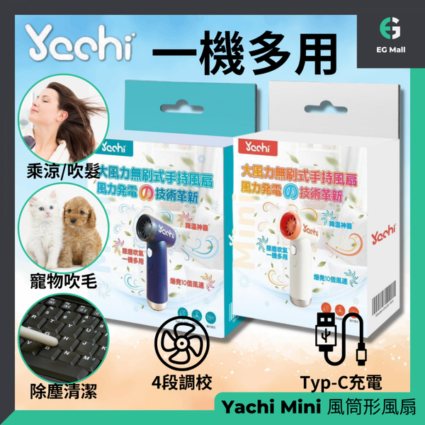 Yachi Mini 風筒形風扇 強大風力手持風扇 降溫神器 Type C 快充 四檔調較
