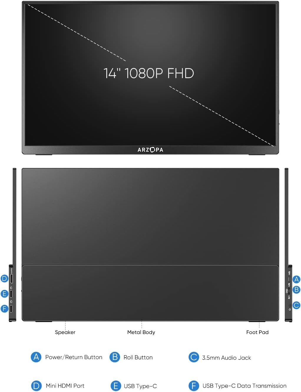 ARZOPA - Arzopa A1 GAMUT Slim 14吋 全高清 IPS 即插即用 超薄磁性智能殼 超輕薄便攜式顯示器 兼容 Switch PS5 Xbox Mac