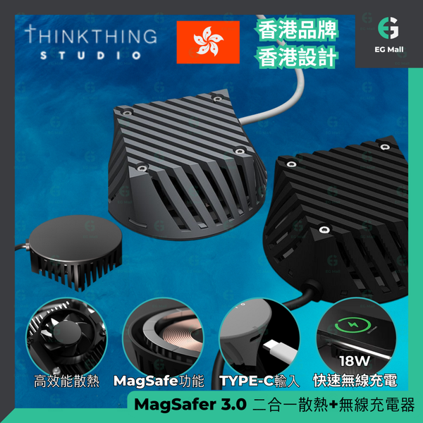 香港品牌 ThinkThing Studio MagSafer 3.0 黑色 二合一 散熱+無線充 最高18W無線充電 打機必備 快速無線充電器