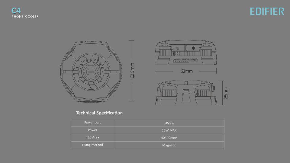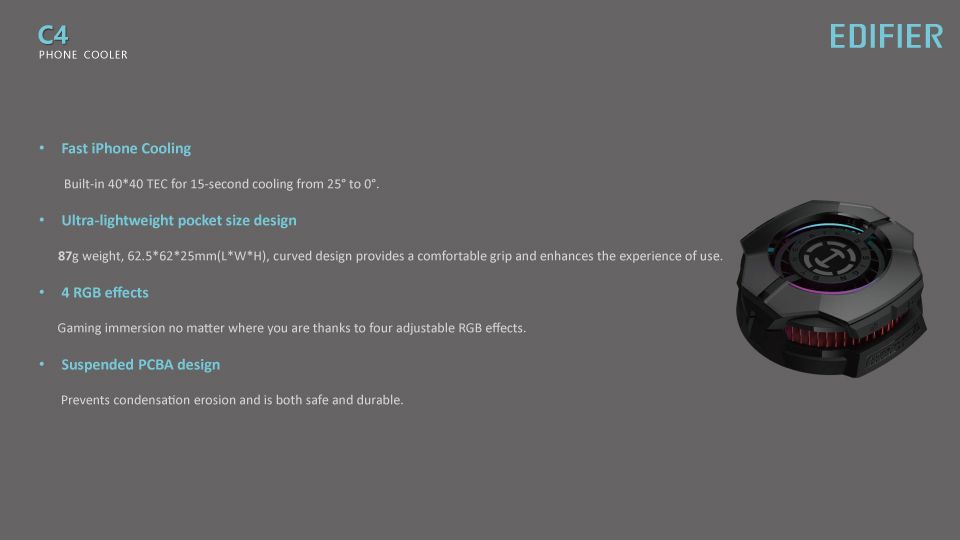 EDIFIER - 漫步者 C4 Phone Cooler 3段速控制 半導體制冷 降溫 遊戲 RGB 磁吸散熱器
