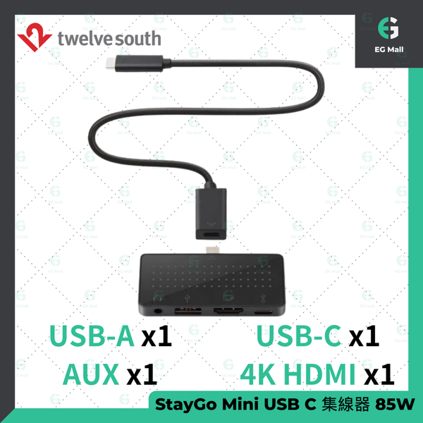StayGo mini USB C 集線器 85W Type C PD USB 擴展器 3.5mm AUX 4K HDMI