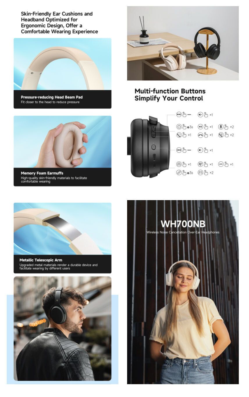 EDIFIER - 漫步者 WH700NB 無線降噪 通話降噪 藍芽 頭戴式無線耳機 0.08S 低延時 Type C 充電 ENC ANC DNN 麥克風降噪