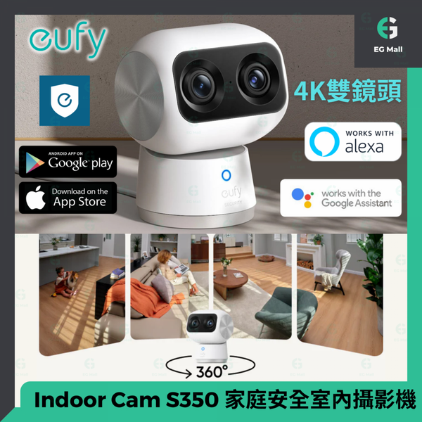 eufy - By Anker 旗艦型號 Eufy Indoor Cam S350 支援雙頻 家庭安全室內攝影機 T8416 4K UHD 4K廣角鏡 最大8倍 360度鏡頭