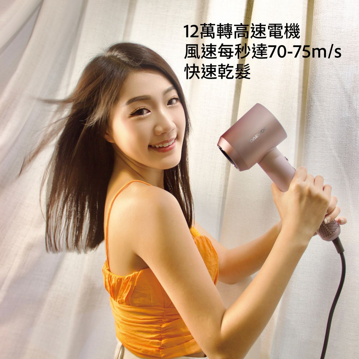 機,風速每秒達 70-75m/s , 加上 NTC 恆溫技術及億級負離子釋出,速乾同時護髮. 專業型格外型設