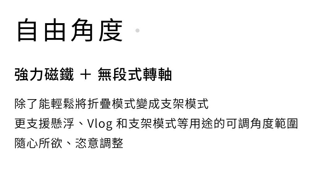 一秒變成自拍手把、Vlog模式、睇片模式及站立模式