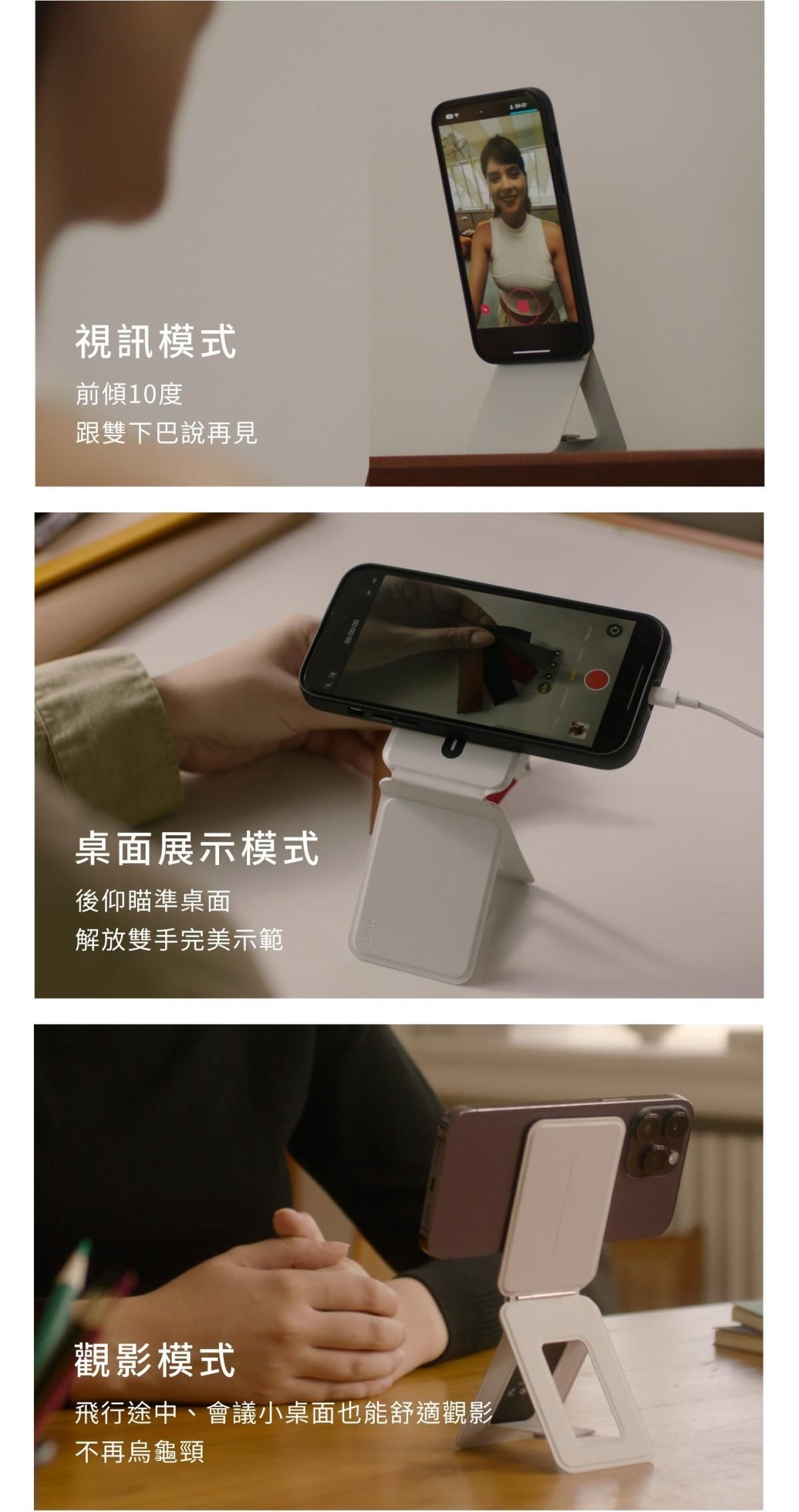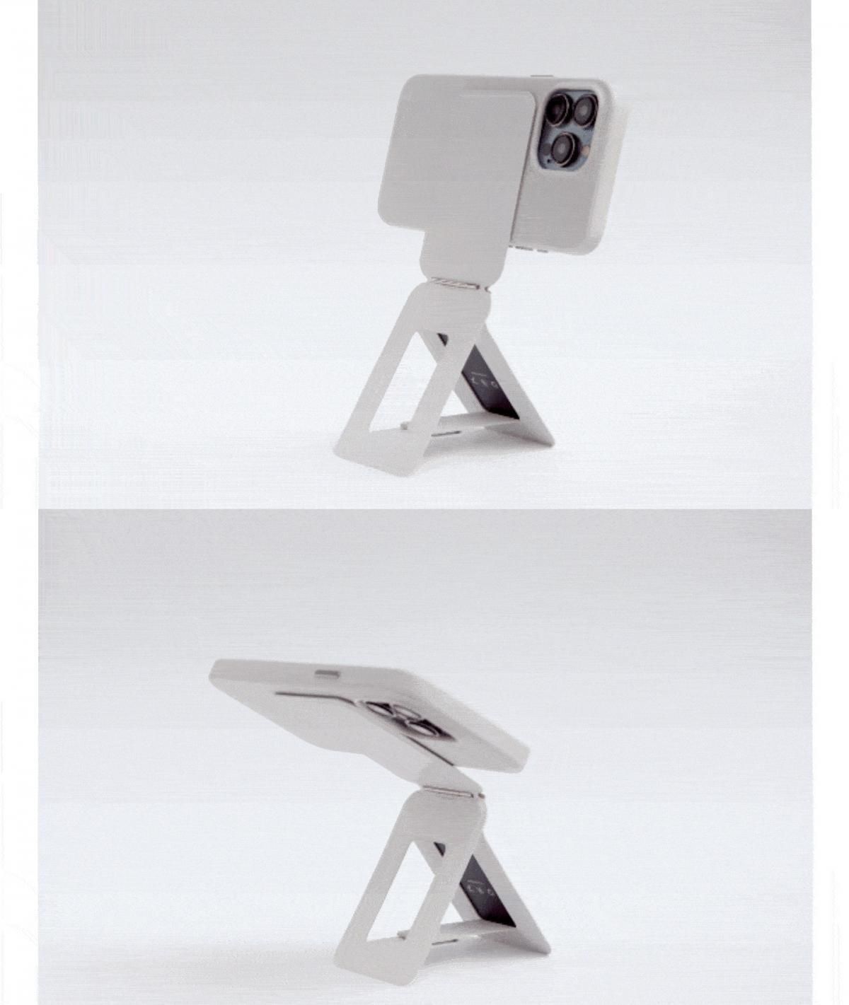 是,它是穩定的。由於靈感來自摺紙的結構,它有一個三角形的底座,以確保穩定,同時在收折時又非常輕薄。它通過了 MOFT 實驗室測試,支持重達 500g的重量(iPhone 14 Pro Max 重 240g)。此外,瞬變三角支架的轉軸使用錳鋼製成,即使在開關 5000 次後仍能保持堅固。