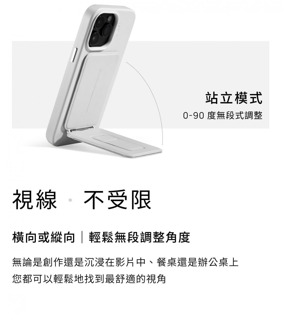 此款商品沒有卡包功能,以免在攜帶時增加體積。但您可以在瞬變三角支架和任何 MagSafe 卡包之間切換,例如我們的磁吸式手機支架,並將它們堆疊在一起,方便隨身攜帶。
