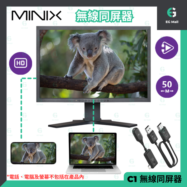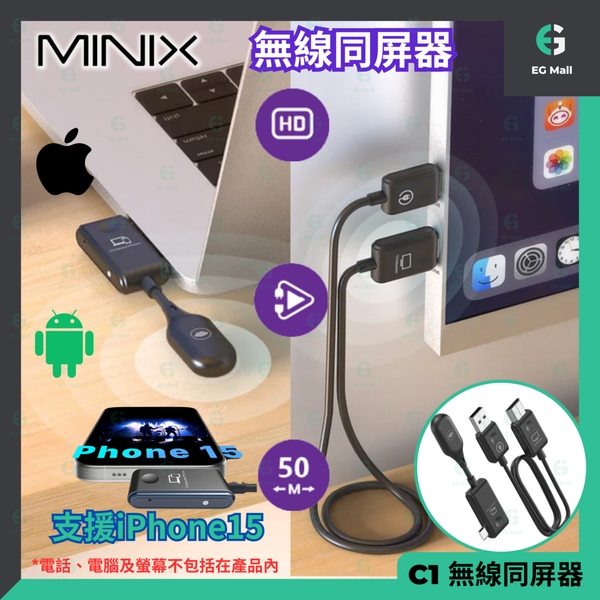 C1 無線同屏器 Type C 投屏器 USB-C 1080P HDMI 轉接器 電視影音傳輸器 投影 手機 平板 無線影音傳輸器 推送寶