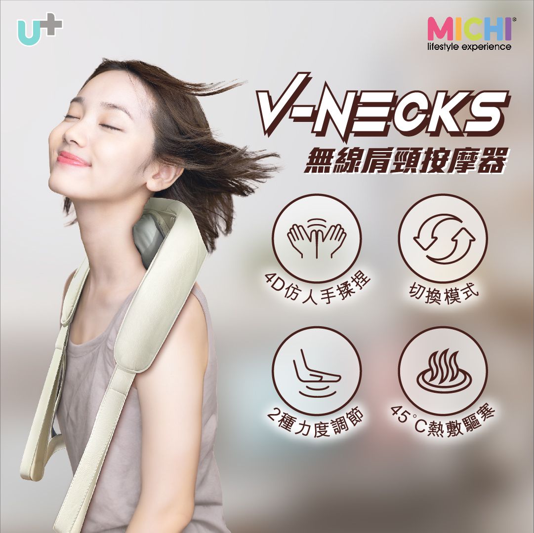 MICHI - MICHI V-Necks 無線迷你4D 溫感舒通 放鬆按摩 肩頸按摩 腰背按摩 腿部按摩 揉捏式 無線肩頸按摩器