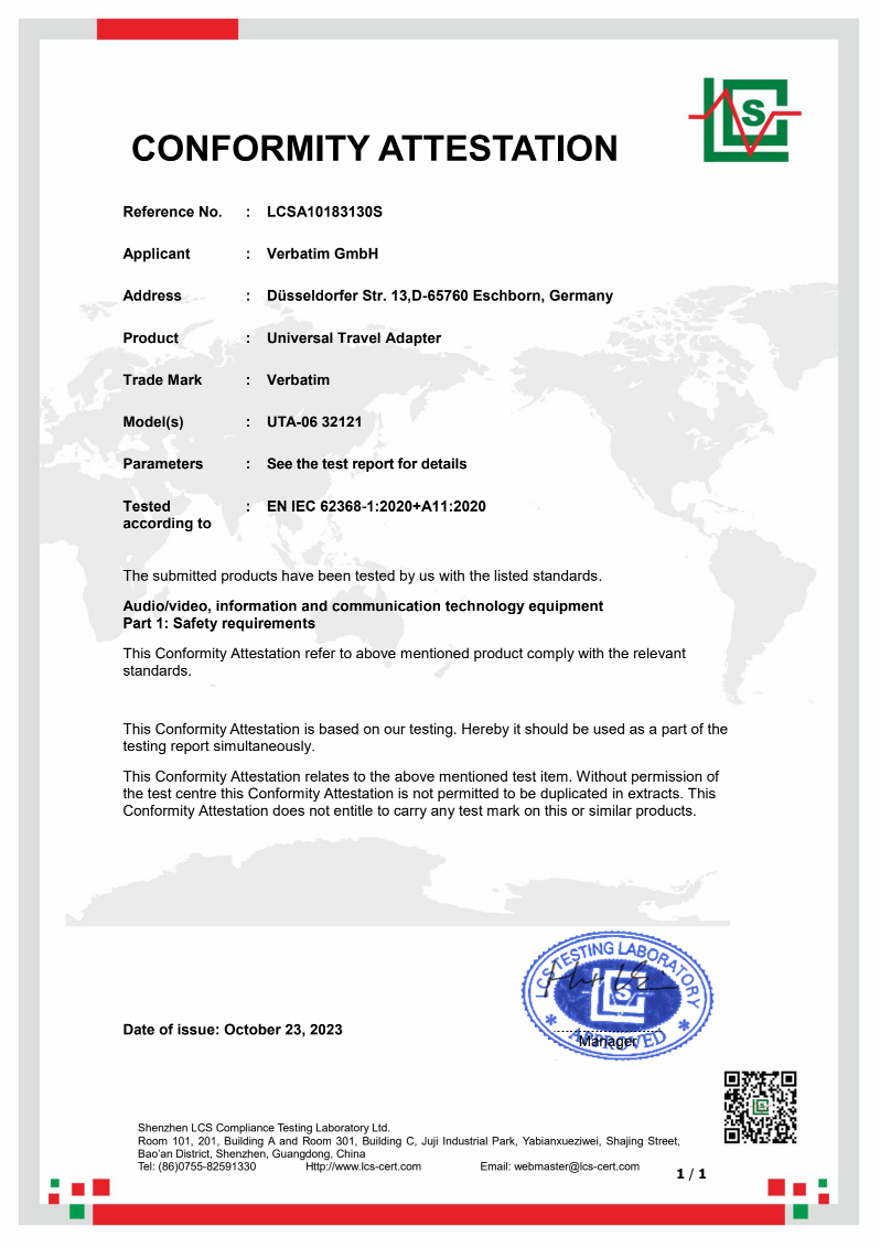 這款通用適配器採用迷人的黑色 3D 設計,採用優質防火聚碳酸酯材料製成,並通過 CE、UKCA、FCC 和 ROHS 認證。