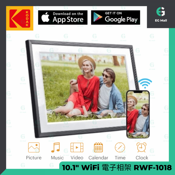 柯達 - Kodak 電子相架 10.1吋 RCF-1018 IPS Wifi窄邊框電子相架屏TYPE-C 供電 支援背景音樂和幻燈片播放 觸控螢幕 紅外線搖控 內建32GB內存