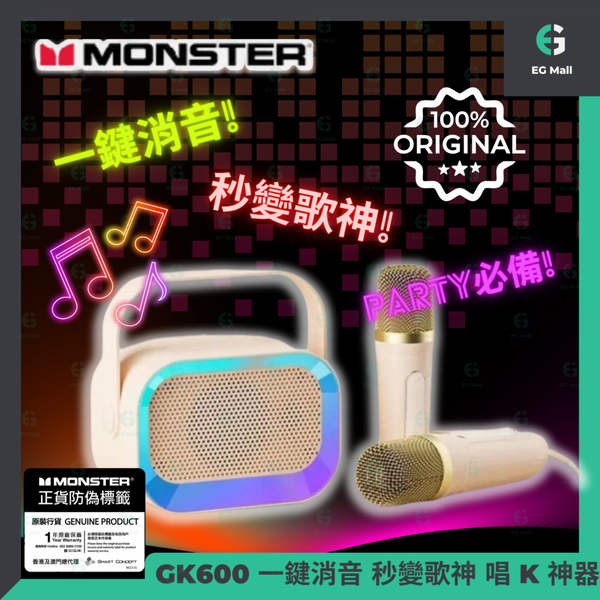 MONSTER - GK600 無線揚聲器 RGB K歌音箱 唱K神器 卡拉OK 藍牙音箱 播放器 RGB 特别版 一鍵原唱消音 AUX 雙Mic 雙人合唱