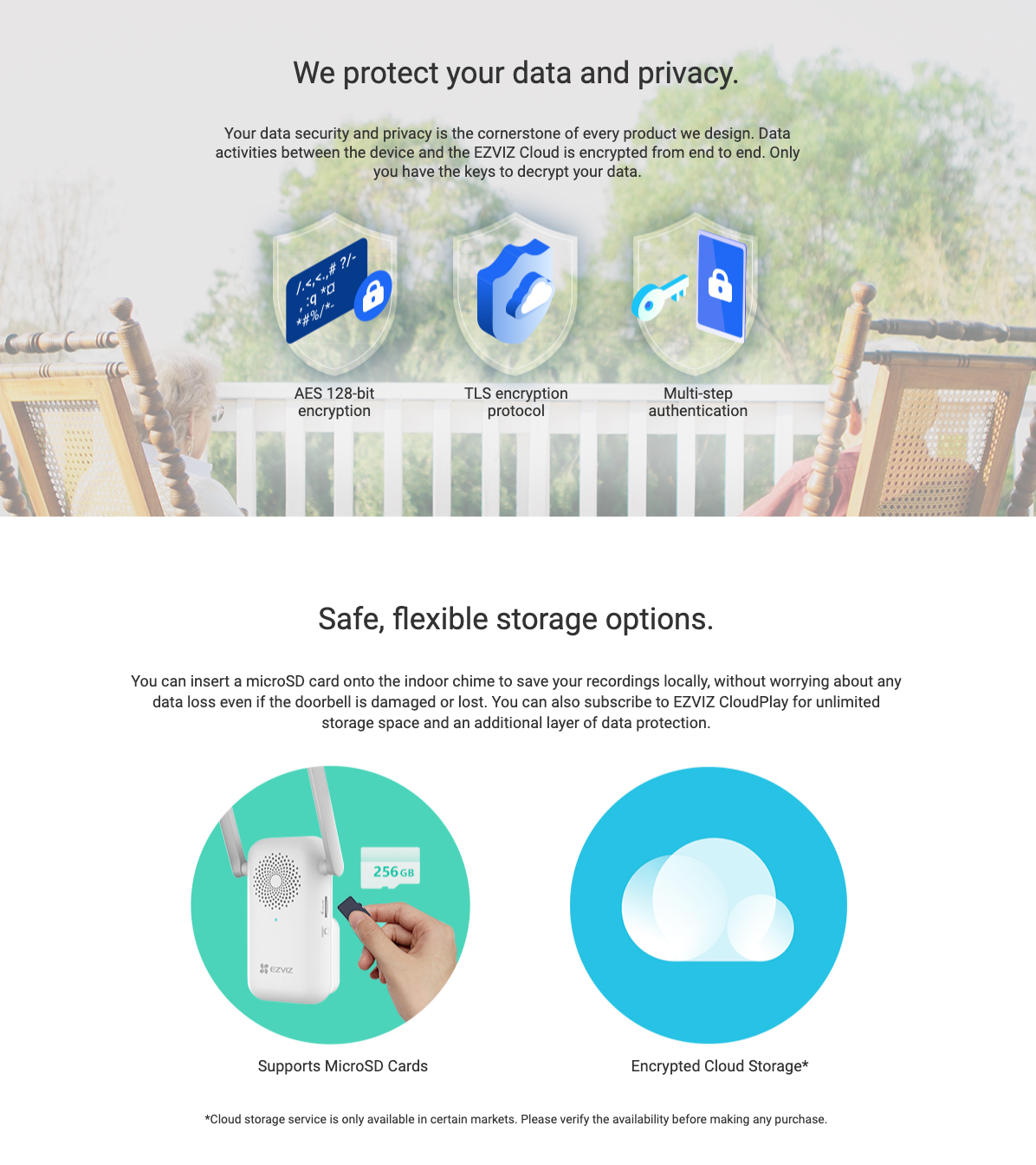 本地儲存:MicroSD card slot (最大支持 256 GB-另購) 雲端儲存:EZVIZ Cloud Storage (須註冊)