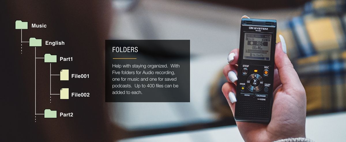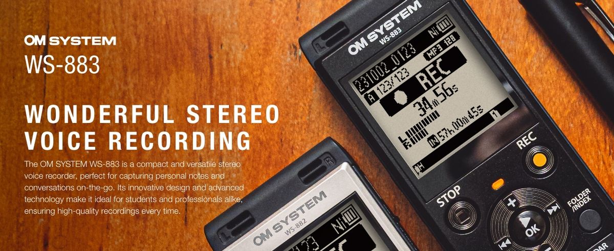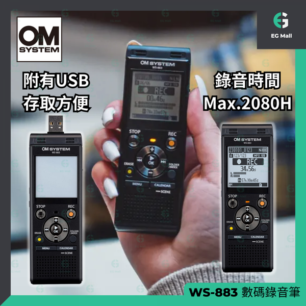 OM SYSTEM - WS-883 WS 883 Linear PCM 數碼錄音筆 高品質錄音 ABC 循環播放 語音變聲播放 線性 PCM MP3 錄音格式 噪音消除