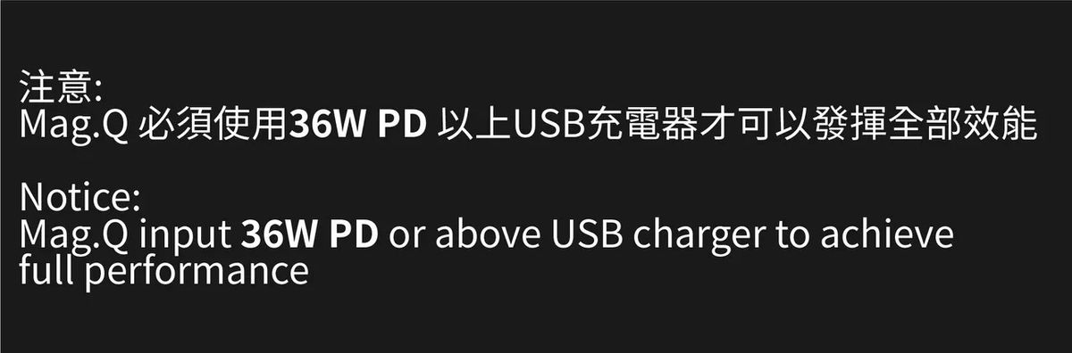 注意: 此設備需要 PD 36W 以上Type-C 充電器. 才可以發揮全部效能 (需另購)