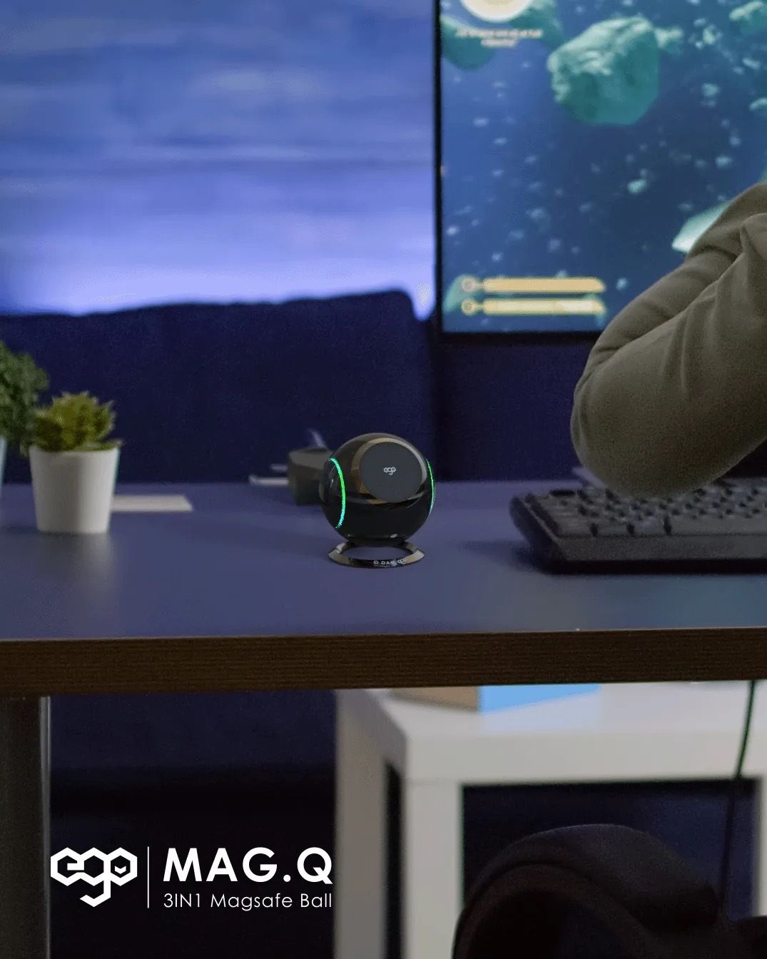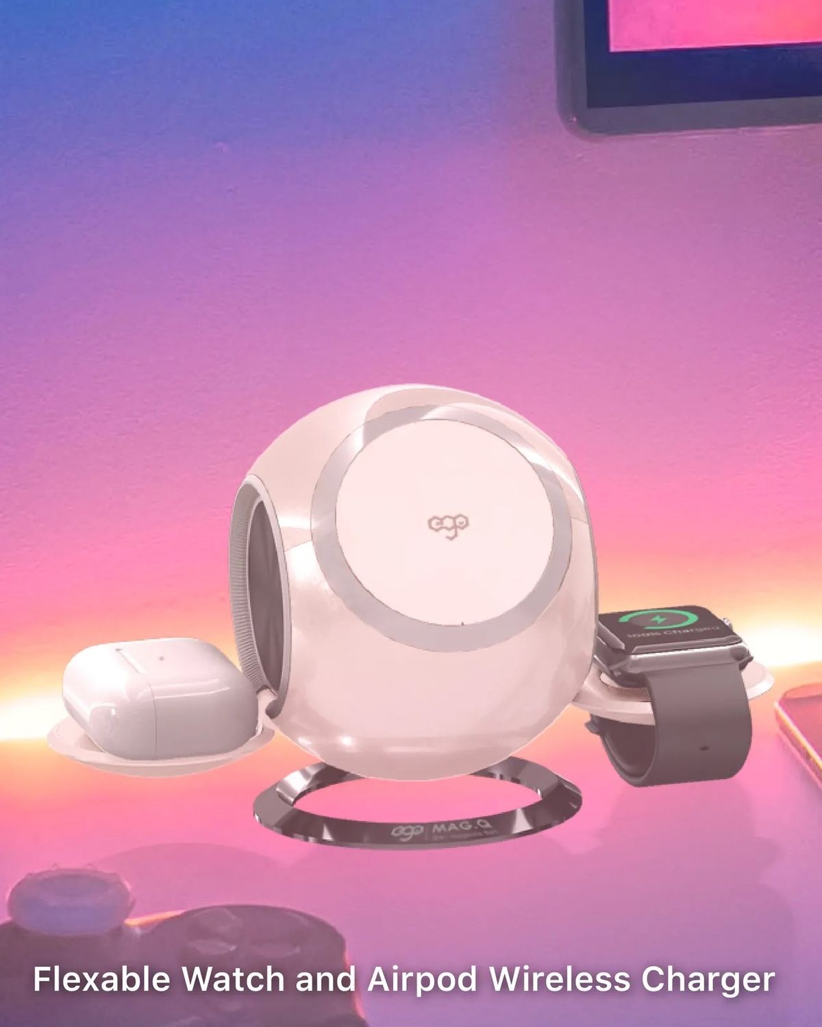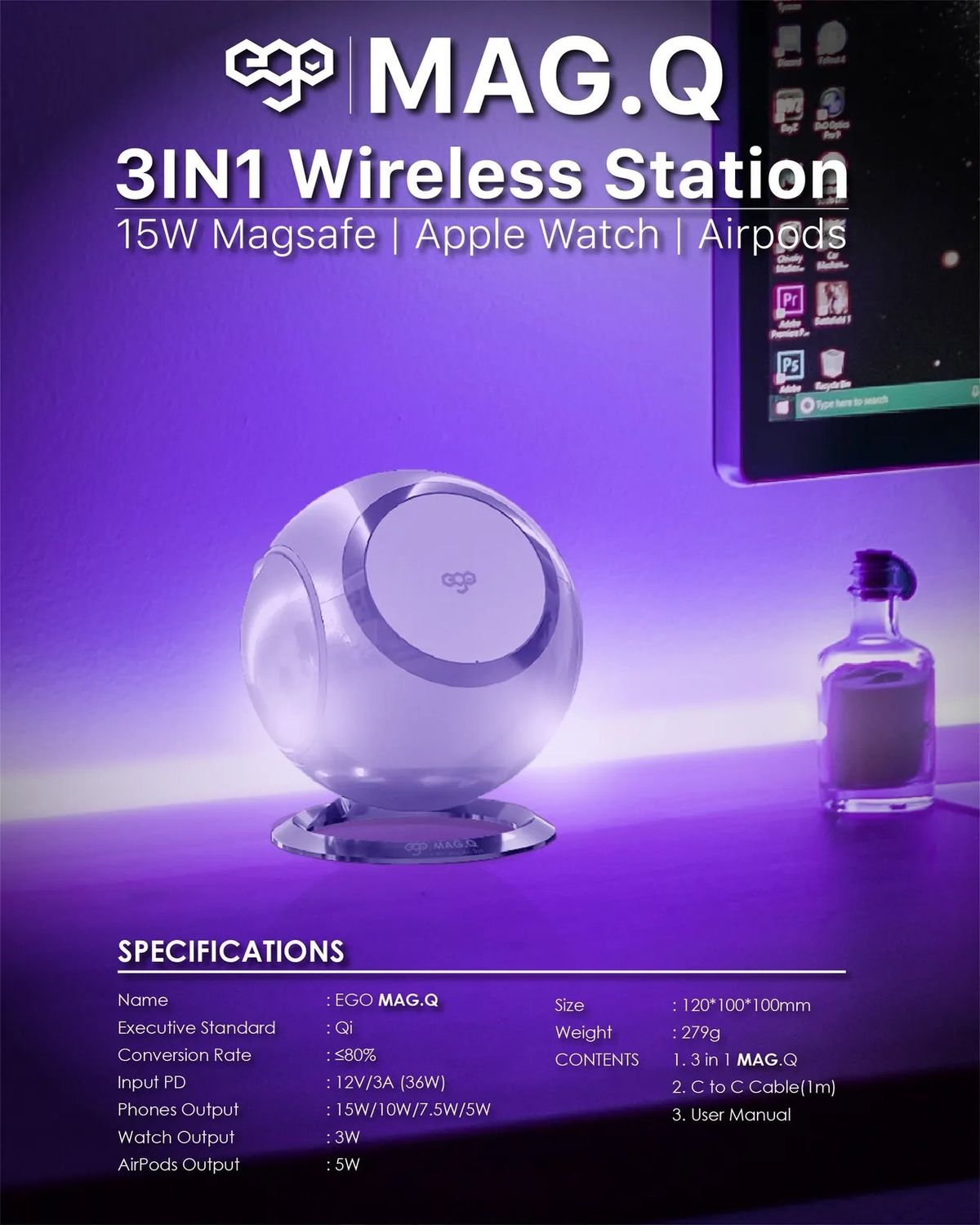 ego - EGO Mag.Q @ 3合1 Magsafe 15W QI 無線充電座 RGB 可摺疊充電座 N48 磁鐵 附送Type-C to C 電源線 1.2m