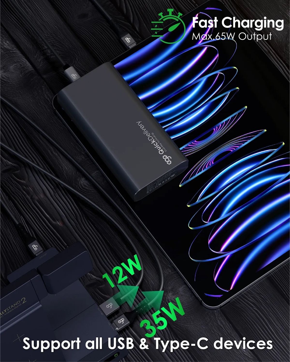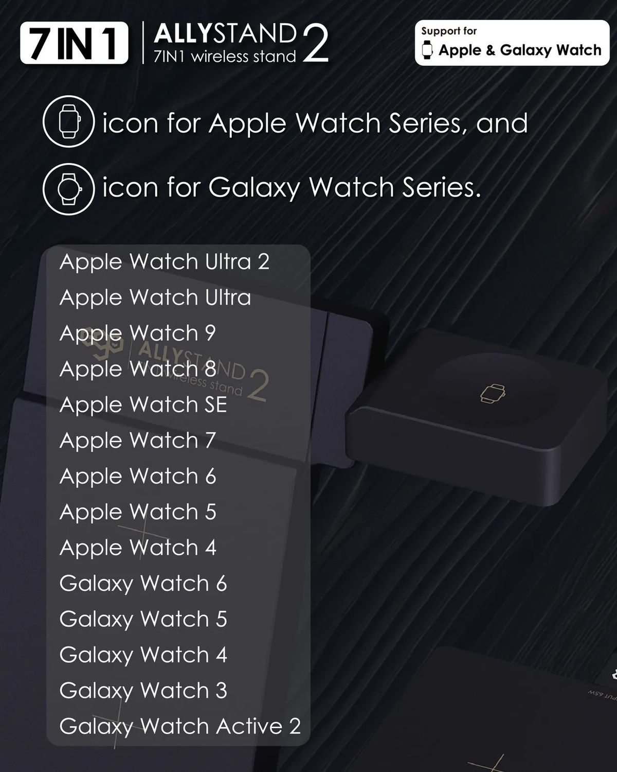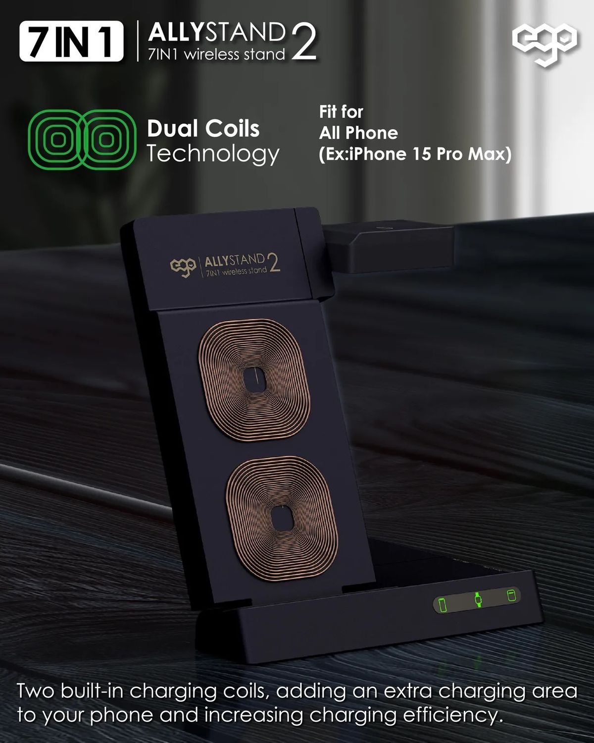 ego - AllyStand 2 7合1 75W PD QI 無線充電座 GaN 3代 三星手錶 蘋果 Iwatch 附送Type-C to C 100w 電源線 1.2m 調整角度設計