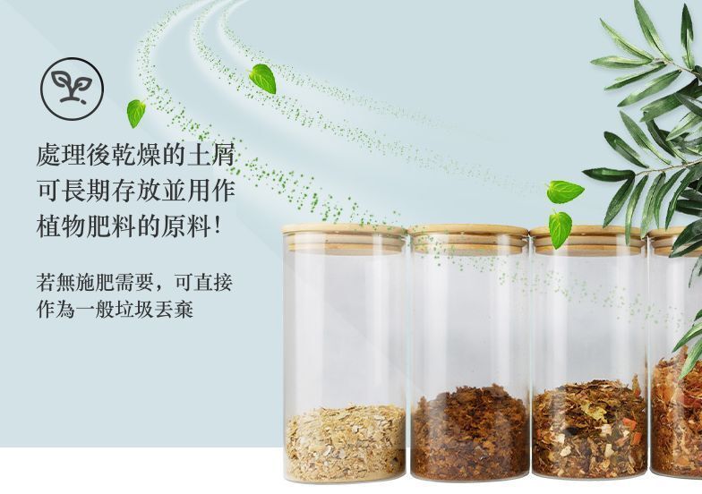 內置電熱殺菌系統,內艙溫度可達 126度,有效殺滅 99.9% 的細菌。註:種小的植物可以直接拿處理後乾燥的土屑用天然肥料,比較大的植物需先將土屑發酵再用作肥料