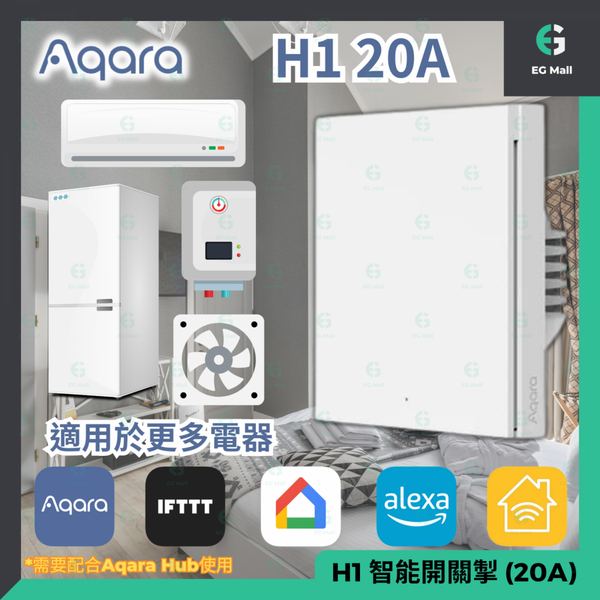 Aqara 智能開關 Smart Switch 20A 4400W 牆壁開關 H1 20A 智能家居 熱水器 污水泵 大型冰箱 空調 廚房電器 牆壁開關
